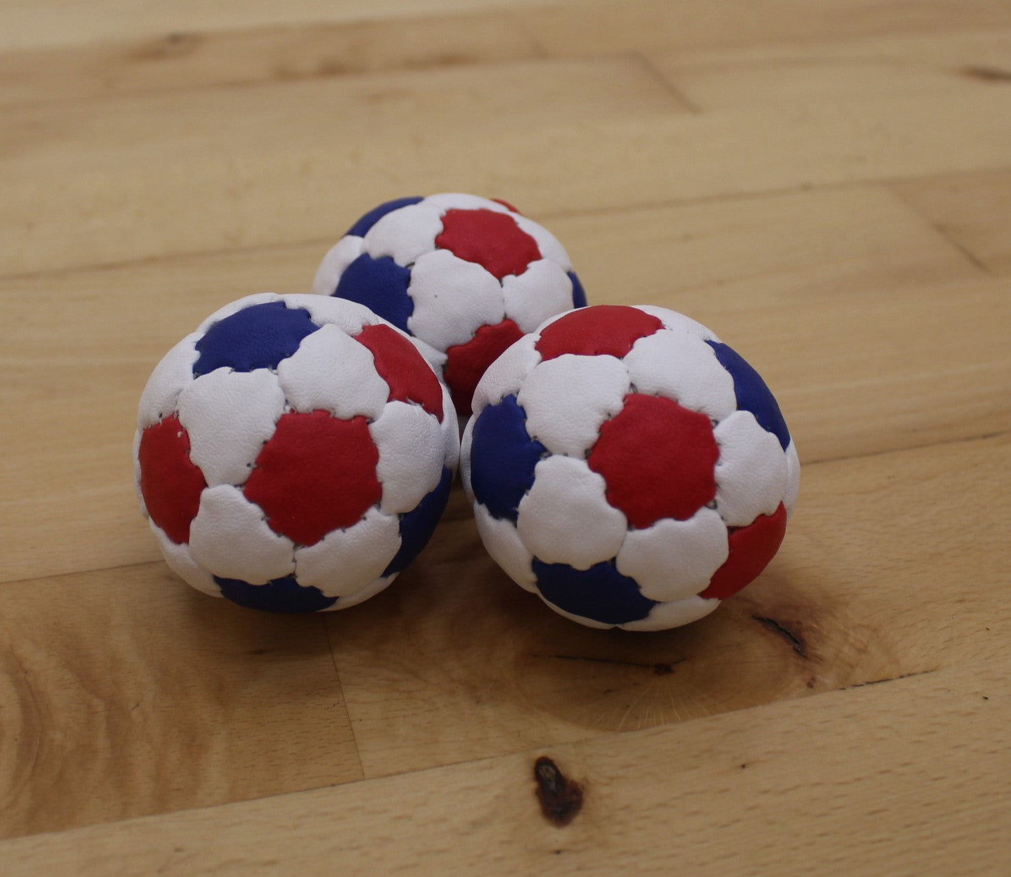 Premium storage bundle featuring 10 handcrafted netbags in a striking red, white, and blue color scheme, plus a FREE bonus neon netbag and a large mesh carry pouch to keep everything organized. Perfect for jugglers who need reliable, breathable storage for their equipment.